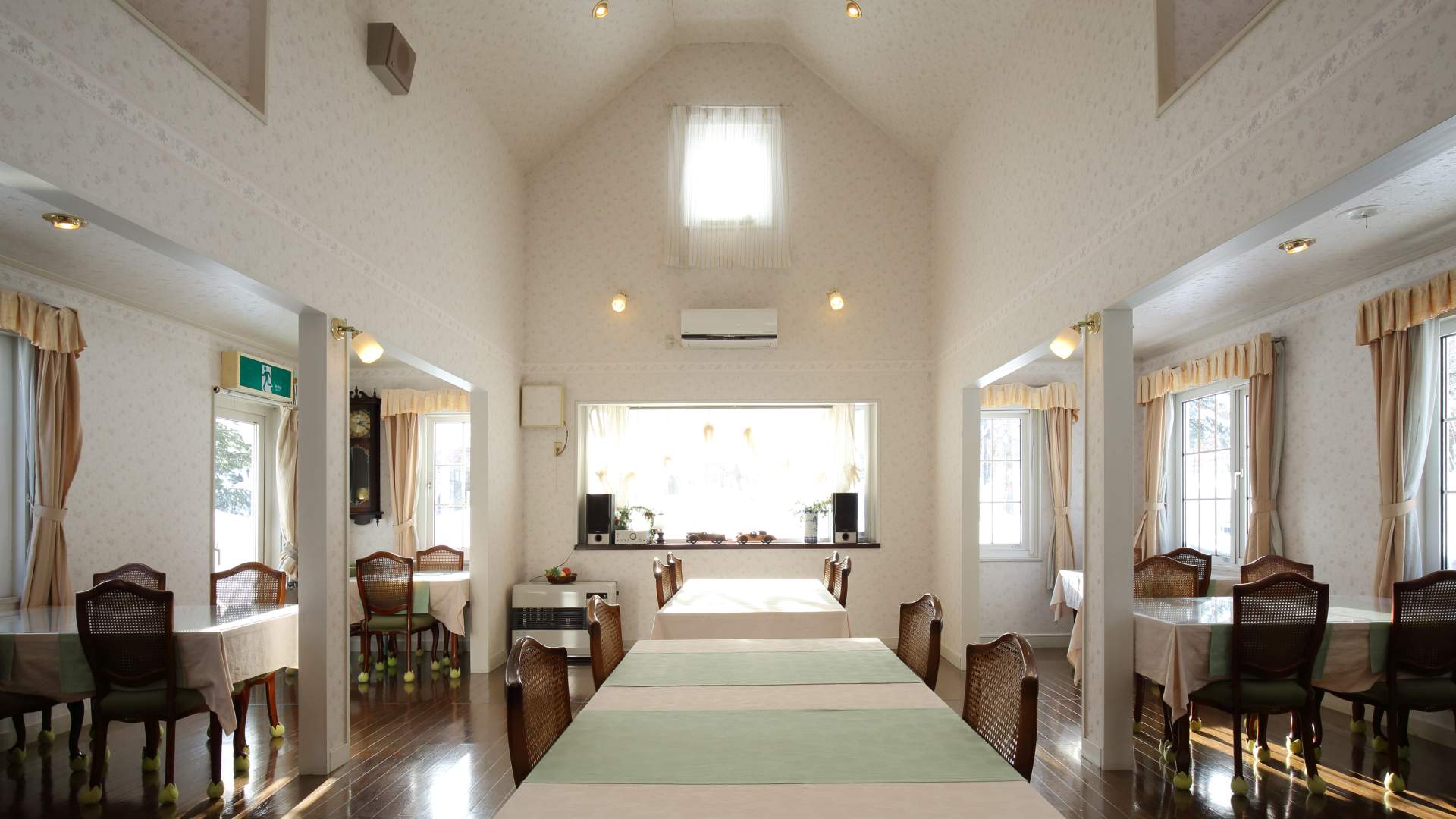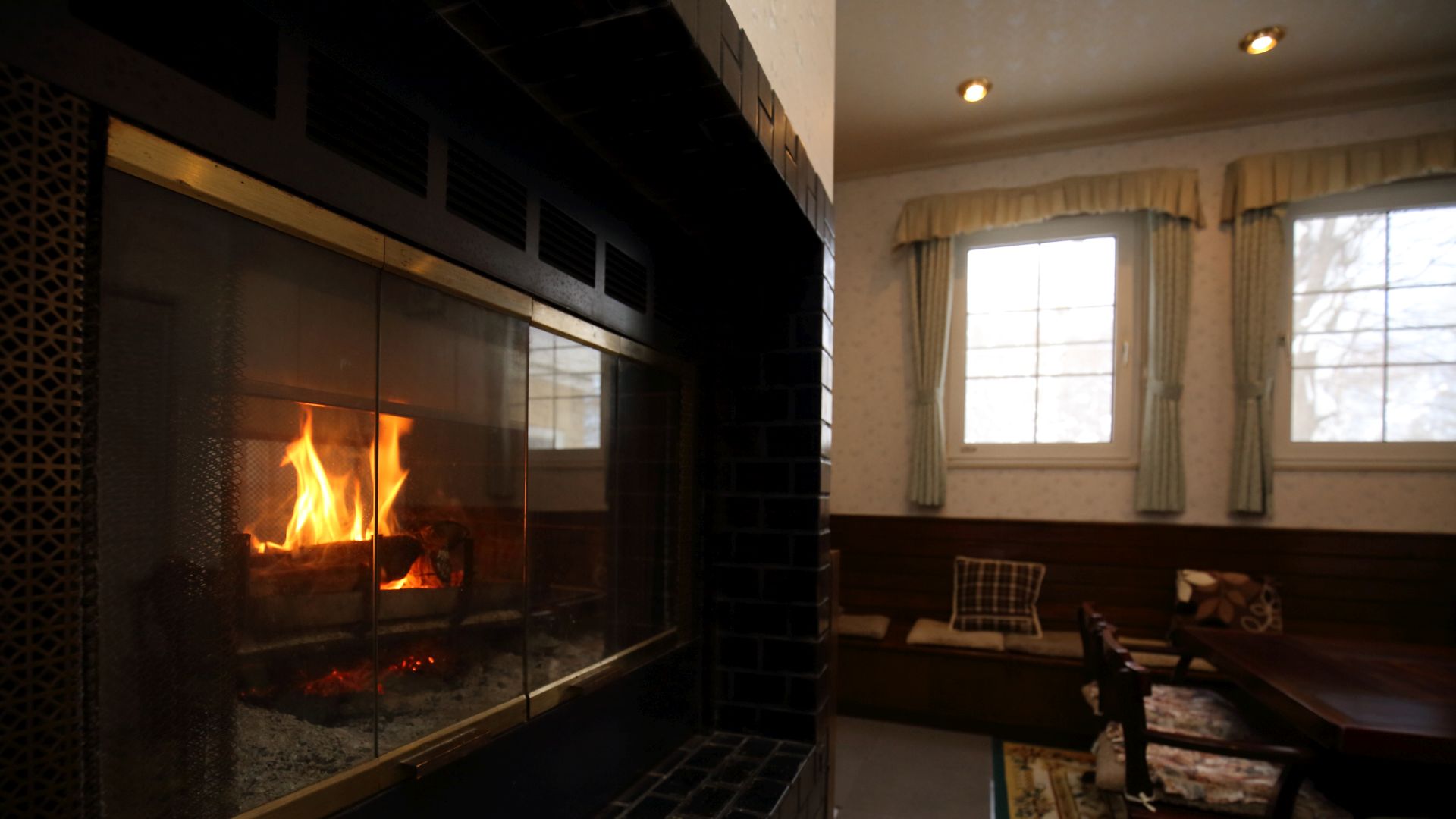 ・ヨーロッパからから直輸入した暖炉と吹き抜け天井の40畳ダイニング。